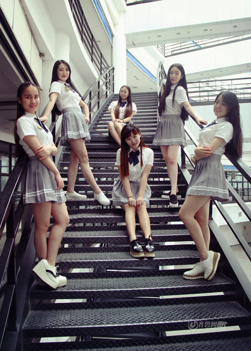 Recently, six female students from the same dormitory posed for pictures on the campus of Shandong University of Arts.(Photo/iqilu.com.cn)
