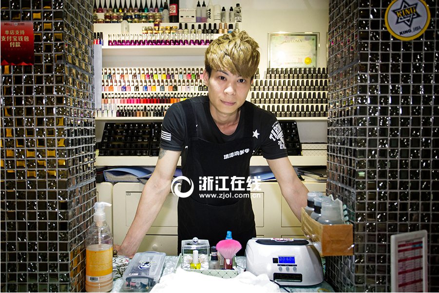 Liu Yongcong has been a manicurist for six years. After overcoming all the obstacles and discrimination, he is now the chief manicurist of a shop and licensed manicure trainer. Last week, he moved to Hangzhou from Guangzhou because he thought the unsaturated manicure market in Hangzhou had more potential.