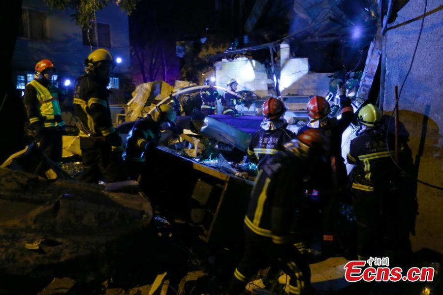 Firefighters put out a fire at a restaurant in Fengtai district, Beijing, May 28, 2015. Houses and cars near the restaurant were also damaged and the cause of the fire is still under investigation.(Photo: China News Service/Fu Tian)