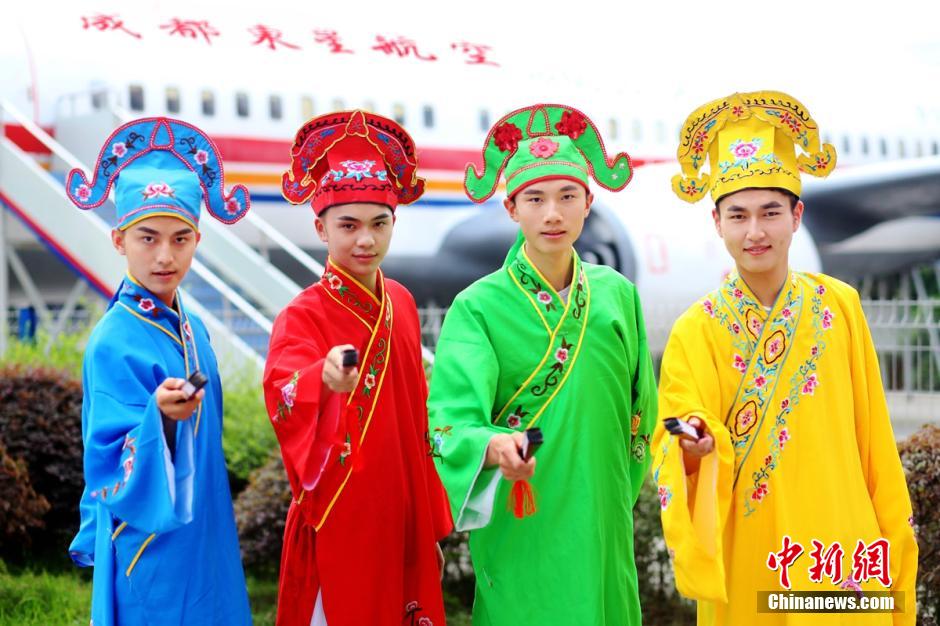 Upon graduation, eight students from Chengdu East Star Airlines Travel College take creative photos to celebrate their colorful university life. These students have been recruited as flight attendants.(Photo/Chinanews.com)
