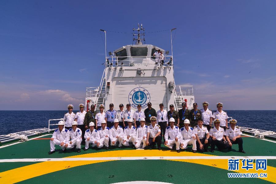 | Crew of China's marine patrol ship Haixun 31 and soldiers and officers from other countries pose for a group photo.(Photo/Xinhua) |