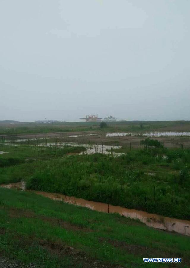 Photo taken on June 2, 2015 shows a distant view of the ship sinking site in the Jianli section of the Yangtze River in central China's Hubei Province. A passenger ship carrying 458 people sunk Monday night in the Yangtze River, China's longest. Rescue work is hampered by strong wind and heavy rain. (Xinhua)
