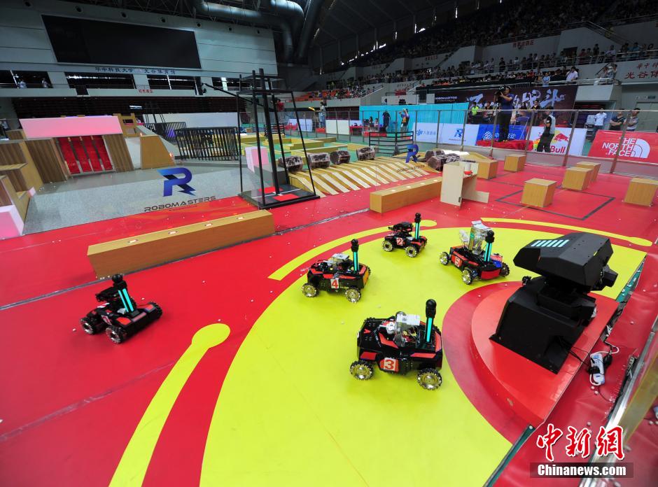 The final of central and south competition areas of 2015 China Robot Competition “RoBoMasters” was held in Huazhong University of Science and Technology in Wuhan, central China’s Hubei province on May 31, 2015. 22 teams from 17 universities attended the game. All the attending robots are developed independently. The 32 winners from different competition areas will take part in the national final in July in Shenzhen. (Chinanews/Zhang Chang)