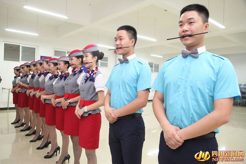 Twins who will become flight attendants take training in Sichuan Southwest Vocational College of Civil Aviation. (Photo/newssc.org)