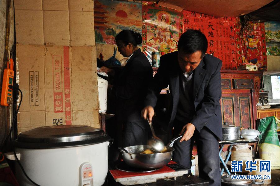 Xie Bihua and his wife prepare meals for the students on May 28, 2015. (Xinhua/Yang Wenbin)