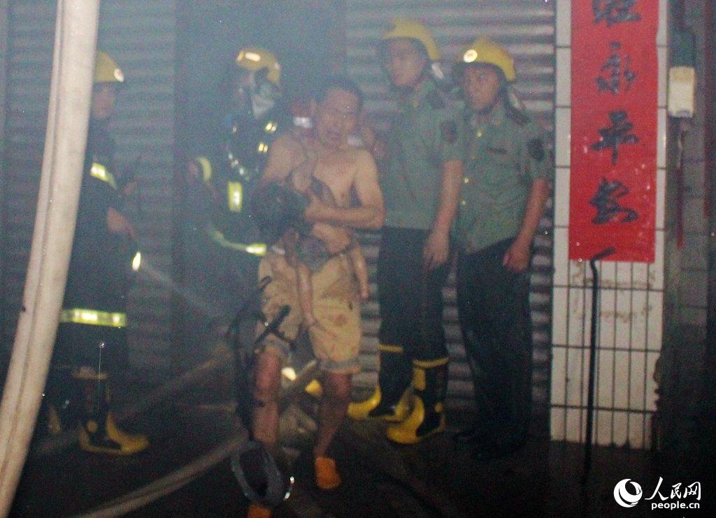 A firefighter gives the little girl rescued by Yang Kezhang to her father. (Photo source: people.cn)