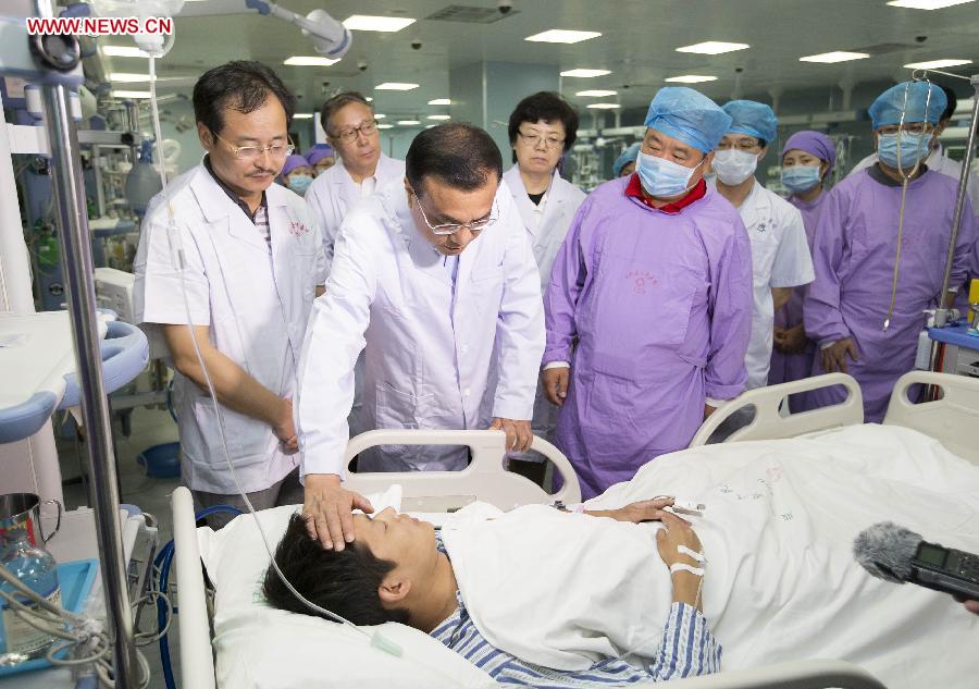 Chinese Premier Li Keqiang calls upon survivors of the overturned ship at a hospital in Jianli County, central China's Hubei Province, June 2, 2015. The ship, named Dongfangzhixing, or Eastern Star, sank at around 9:28 p.m. (1328 GMT) on Monday in the Jianli section of the Yangtze River. Carrying 405 passengers, five travel agency workers and 47 crew members, the ship was heading from Nanjing, capital of east China's Jiangsu Province, for southwest China's Chongqing Municipality. (Xinhua/Ding Lin)