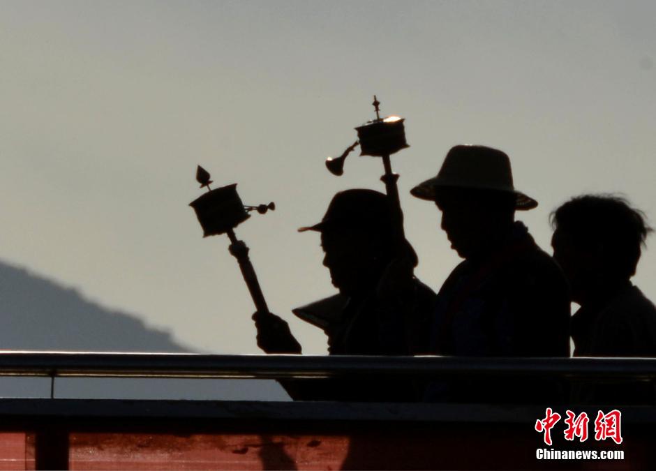 Large number of Buddhists come to Tibet during Tibetan traditional Festival “Saga Dawa” in April of the Tibetan calendar. Most of them walked along three roads in Lhasa while turning the prayer wheels. The festival commemorates the birth, enlightenment, and death of Gautama Buddha. (Chinanews.com/Li Lin)