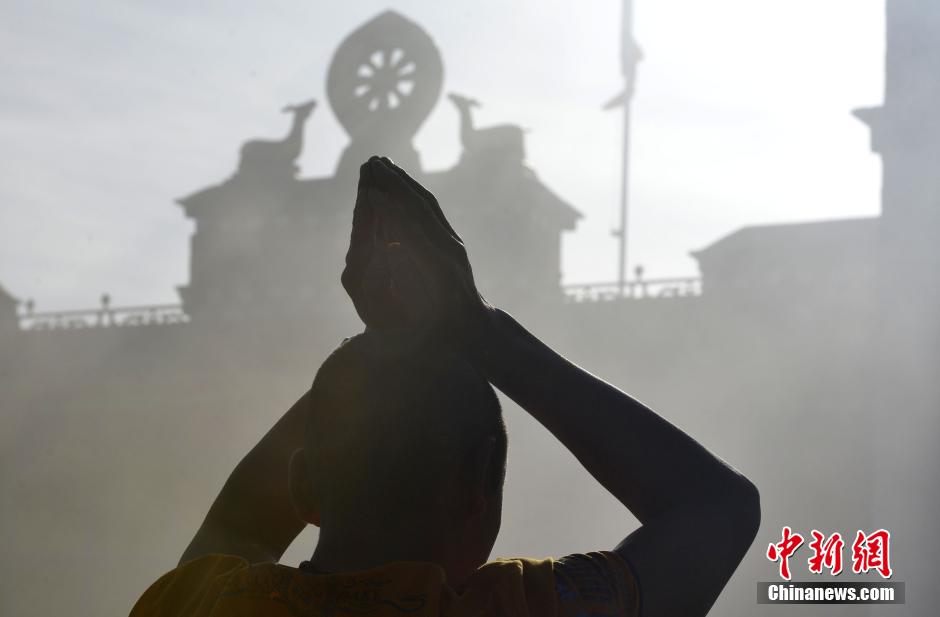 Large number of Buddhists come to Tibet during Tibetan traditional Festival “Saga Dawa” in April of the Tibetan calendar. Most of them walked along three roads in Lhasa while turning the prayer wheels. The festival commemorates the birth, enlightenment, and death of Gautama Buddha. (Chinanews.com/Li Lin)