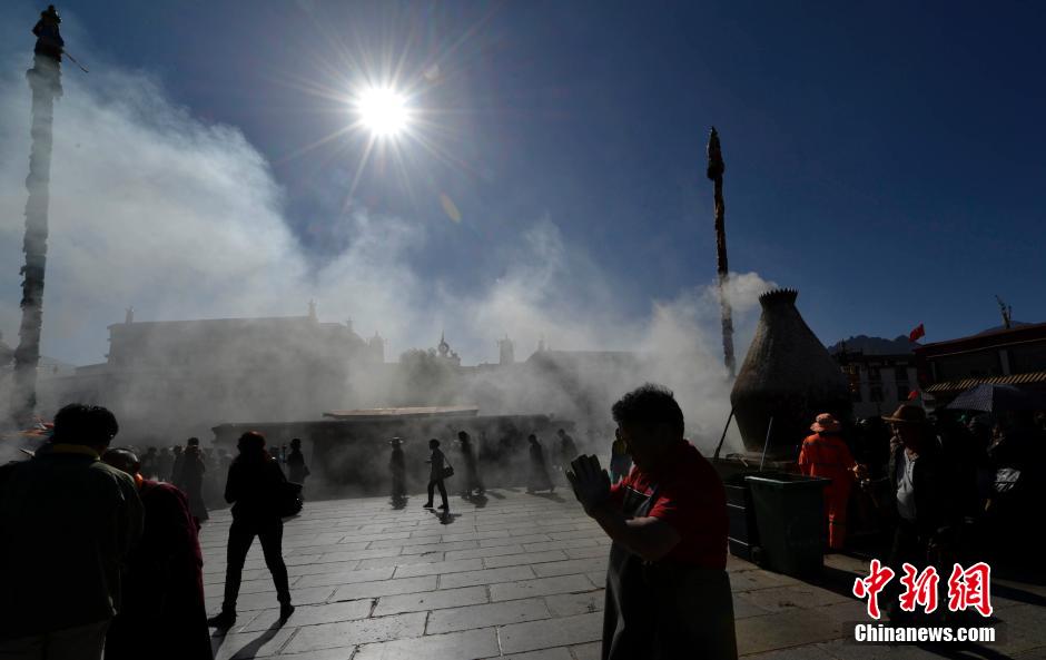 Large number of Buddhists come to Tibet during Tibetan traditional Festival “Saga Dawa” in April of the Tibetan calendar. Most of them walked along three roads in Lhasa while turning the prayer wheels. The festival commemorates the birth, enlightenment, and death of Gautama Buddha. (Chinanews.com/Li Lin)