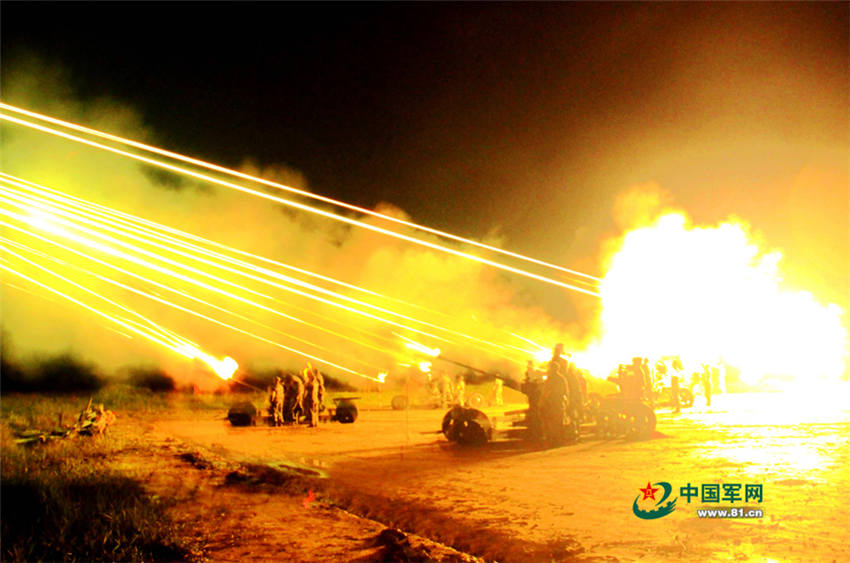 From May 28 to June 1, 2015, a company of soldiers from an artillery battalion stationed in Yizheng conduct drill on the shore of the Yellow Sea. They accomplished the drill despite hardship. (81.cn/Zhou Xiaoming)