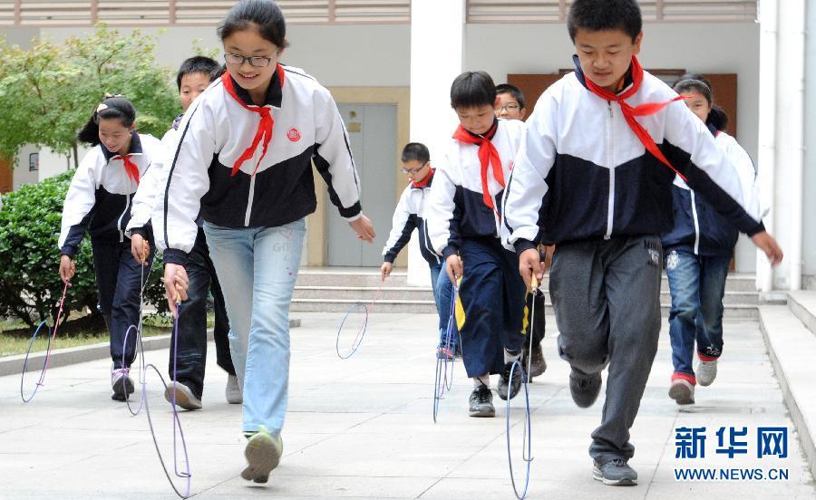 Pupils in a primary school play iron ring pushing game in Suzhou, east China's Jiangsu province, Oct. 25, 2013. (Xinhua/Wang Jianzhong)