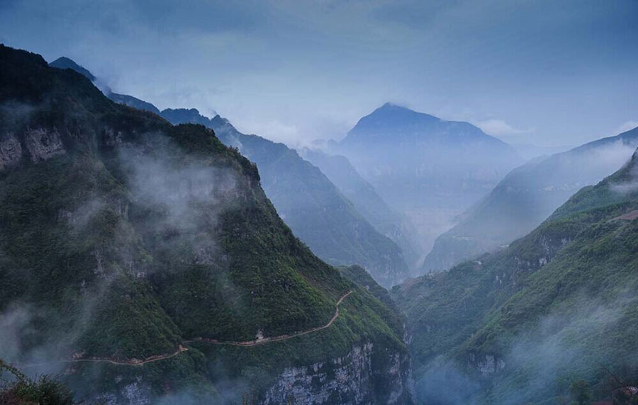 The path on the cliff is covered by smog. (Western China Metropolis Daily/Yang Tao)