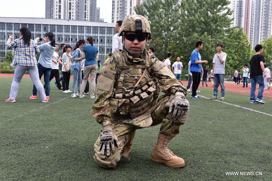 A graduate of Hefei No. 1 Middle School poses for a graduation photo in Hefei, capital of east China's Anhui Province, May 17, 2015. As the graduation season comes, graduates are busy with taking creative graduation photos at campuses. (Xinhua/Wang Suying)