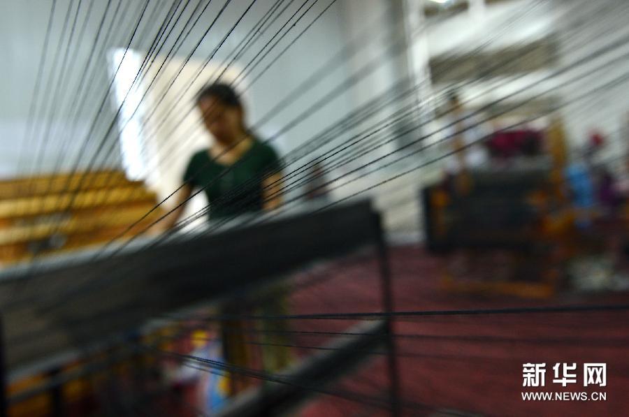 A worker weaves Xilankapu, a Tujia brocade, at a brocade company in Enshi Tu and Miao Autonomous Prefecture, central China's Hubei Province, June 2, 2015. (Photo/ Xinhua)
