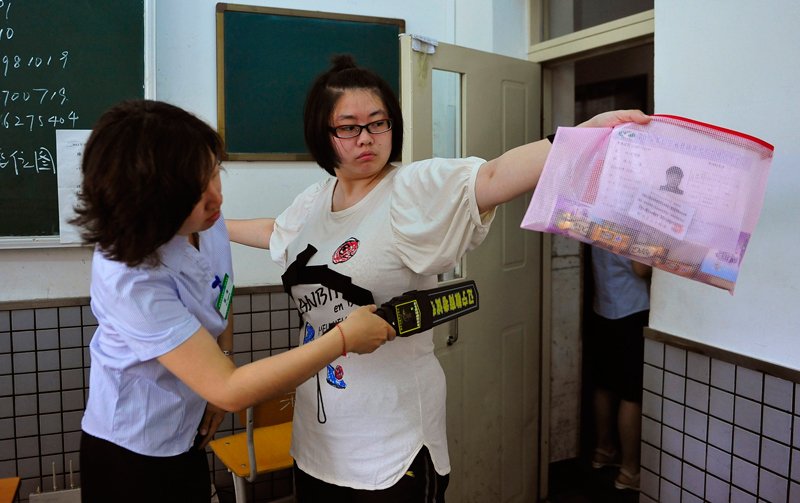 Students have to pass the security test before entering the exam room in Shenyang. (Photo/Haiwainet.cn)
