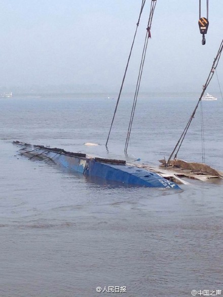 Rescue team turns capsized cruise ship 90 degrees onto its side. (Photo/ CNR.cn)