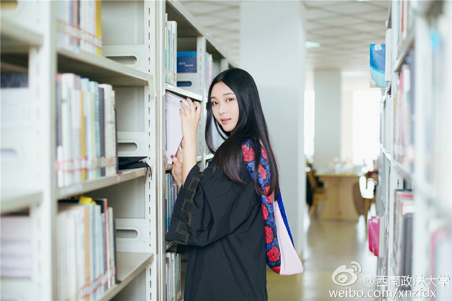 Cheng Qiuyue, campus belle of Southwest University of Political Science and Law in Sichuan province, is an outstanding student. As a law major, she will enter the legal service industry after graduation. (Photo source: Weibo of Southwest University of Political Science and Law)
