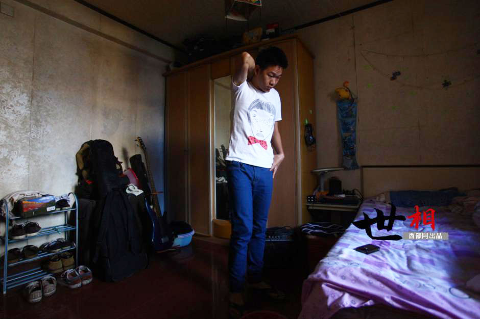 They rent an apartment in a shabby neighborhood. Old calendars were hung on the wall and furnitures piled in the living room. "The environment is not good, the biggest advantage is the convenient transportation," said the bass player. (Www.cnwest.com/He Tong)