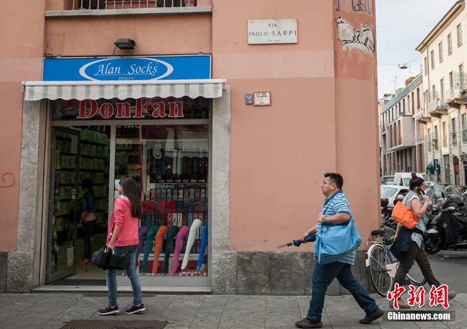 A socks shop run by a Chinese in Via Paolo Sarpi, Milan, Italy, June 4, 2015. (CNS/Li Qing)