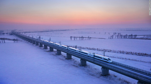| A high-speed train runs on the Harbin-Daqing Railway.(Photo/Wang Wei) |