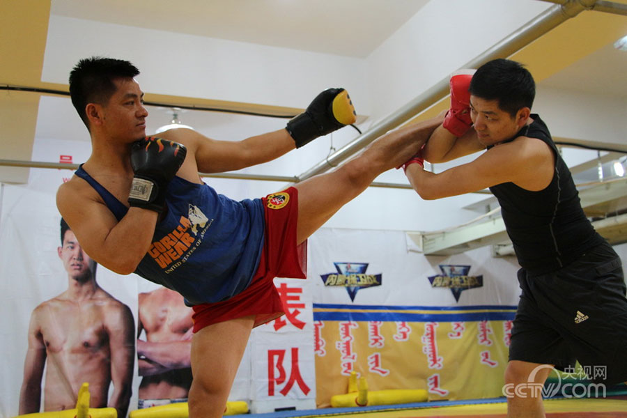 | Bai Rui often practices boxing in the club run by his classmate. He still likes sports very much. (CNTV/Du Xiaojing) |