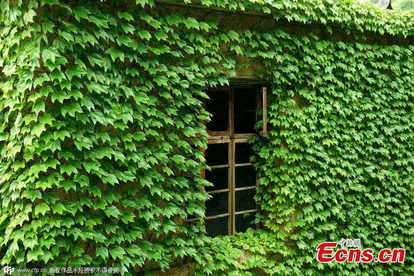Houses covered with tendril climbing plants are seen on a deserted village in Zhoushan, East China’s Zhejiang province on May 31, 2015. The former fishing village has been reclaimed by nature after its villagers move out.