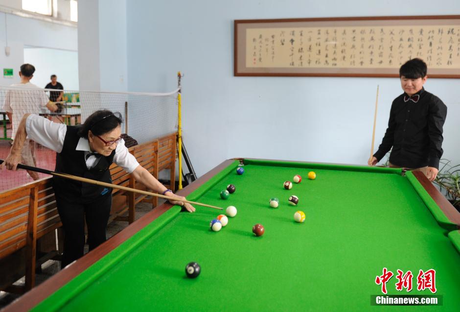 Feng Huageng, an octogenarian granny, is a big billiards fan in Changchun, northeast China’s Jilin province. Starting to learn to play billiards in 2002, she has become a champion among aged billiards players in Changchun. (Chinanews/Zhang Yao)