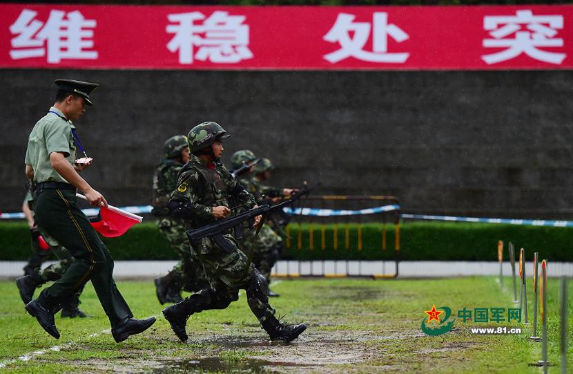 174 armed police soldiers from Guangdong border defense force conduct a shooting competition on May 23, 2015. The three-day competition aimed to build up their fighting capability and shooting skill in harsh environment. (Photo/81.CN)