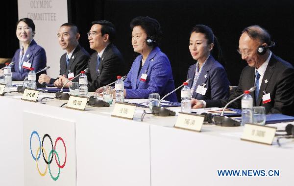 | China's Vice Premier Liu Yandong (3rd R) attends the presentation of Beijing Candidate City's bid for the 2022 Winter Olympic games, at the IOC Museum in Lausanne, Switzerland, on June 9, 2015. (Xinhua/Zhou Lei) |