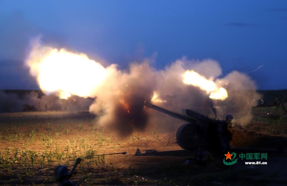 | An artillery regiment of the PLA airborne troops conducts combat firing drill on the night of June 9, 2015. (www.81.cn/Wang Haitao) |