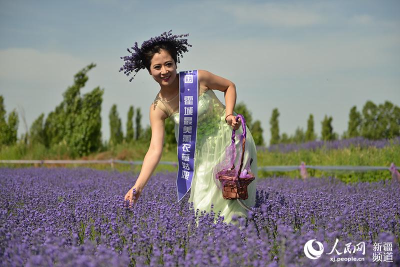 A “l(fā)avender girl” poses for photo in the Lavender field. (Photo/people.cn)
