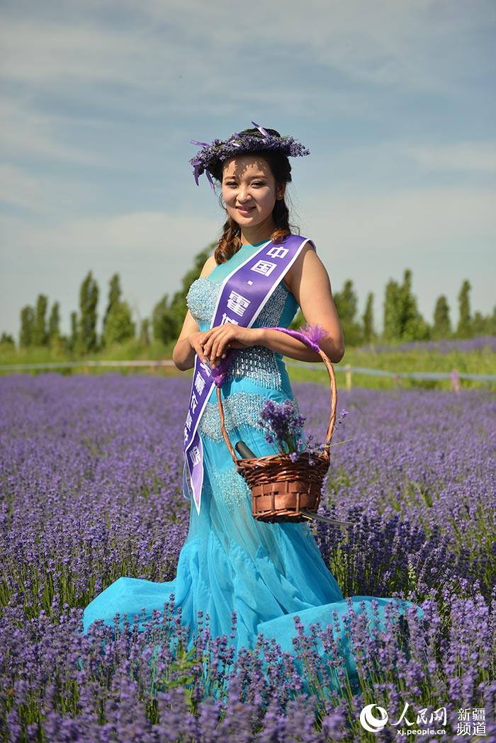 A “l(fā)avender girl” poses for photo in the Lavender field. (Photo/people.cn)