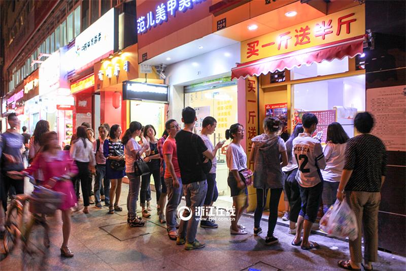 An area dubbed "Bargain Street" sees floods of people frequenting food stands, fast-food chains, Chinese restaurants, western restaurants and clothing stores in Hangzhou, east China's Zhejiang province.(Photo/zjol.com.cn)