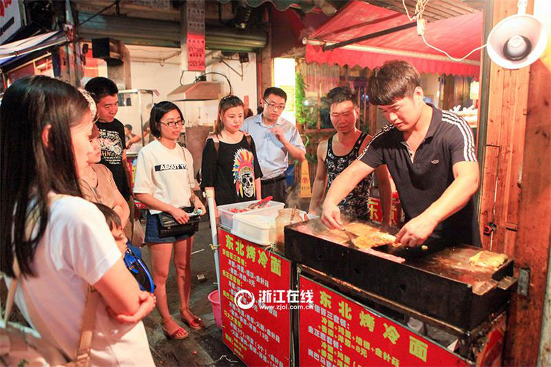 An area dubbed "Bargain Street" sees floods of people frequenting food stands, fast-food chains, Chinese restaurants, western restaurants and clothing stores in Hangzhou, east China's Zhejiang province.(Photo/zjol.com.cn)