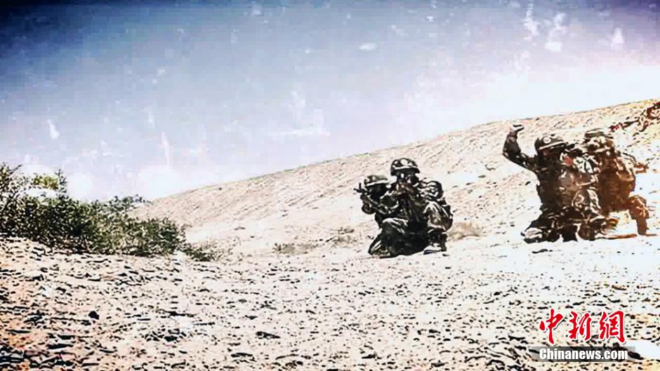 Following the previous two wonderful publicity videos, the border defense armed police force of northwest China’s Xinjiang Uygur Autonomous Region released a group of images of its third publicity video on June 15, 2015. Many netizens expressed their admiration for the armed police soldiers and their anticipation for the new publicity video. (CNS/Peng Xincheng)