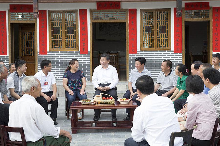 Chinese President Xi Jinping meets with people from local "agritainment" in Zunyi, southwest China's Guizhou province, on 16th June. Agritainment is farm-based tourism, includes family style activities, such as corn mazes, haunted hay rides, pick-your-own pumpkins, etc. (Photo/Xinhua)