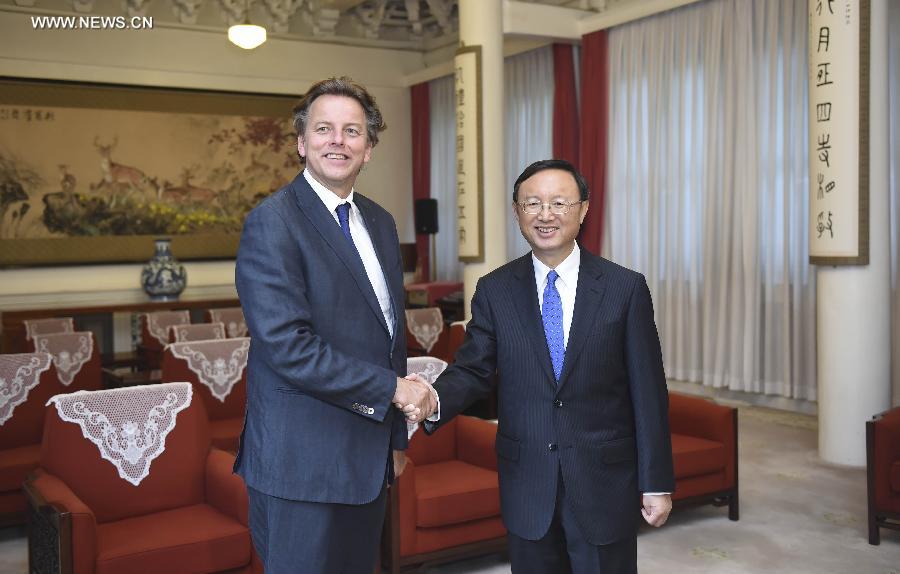 | Chinese State Councilor Yang Jiechi (R) meets with Netherlands' Foreign Minister Bert Koenders in Beijing, capital of China, June 18, 2015. (Xinhua/Zhang Duo) |
