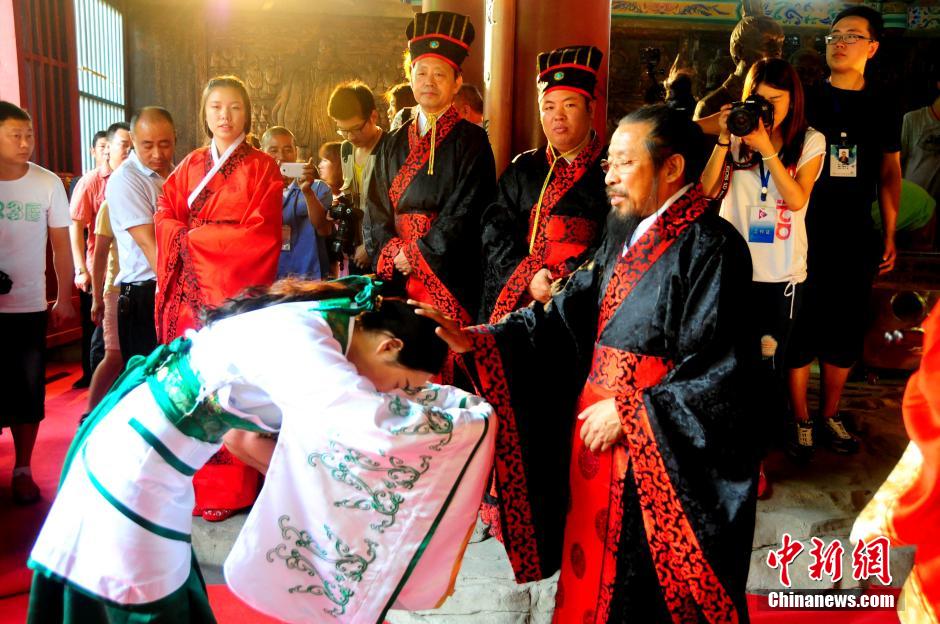 659 students and school leaders wear Hanfu (traditional clothing of the Han Chinese people) at the graduation ceremony held at Hebei Academy of Fine Arts on June 16, 2015. (CNS/Jia Minjie)
