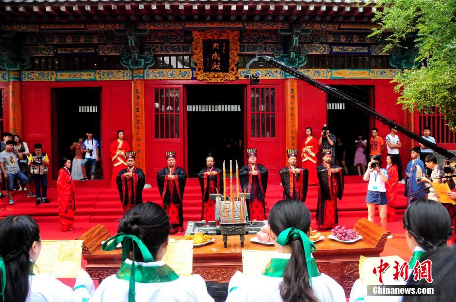 659 students and school leaders wear Hanfu (traditional clothing of the Han Chinese people) at the graduation ceremony held at Hebei Academy of Fine Arts on June 16, 2015. (CNS/Jia Minjie)