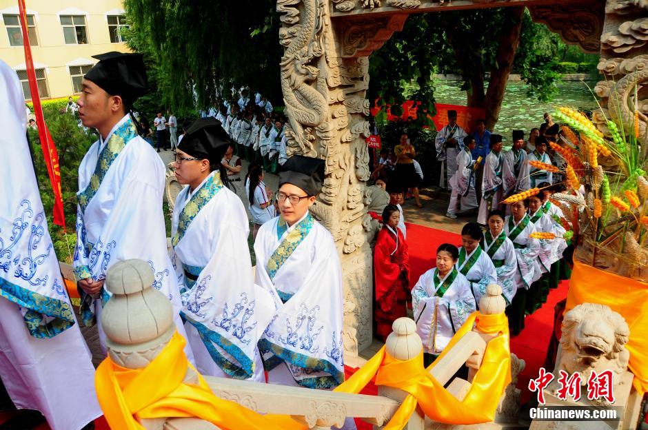 659 students and school leaders wear Hanfu (traditional clothing of the Han Chinese people) at the graduation ceremony held at Hebei Academy of Fine Arts on June 16, 2015. (CNS/Jia Minjie)