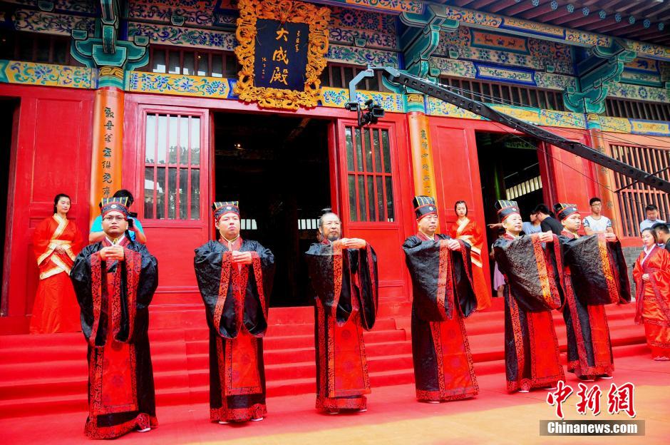 659 students and school leaders wear Hanfu (traditional clothing of the Han Chinese people) at the graduation ceremony held at Hebei Academy of Fine Arts on June 16, 2015. (CNS/Jia Minjie)