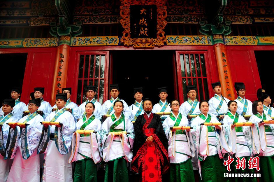 | 659 students and school leaders wear Hanfu (traditional clothing of the Han Chinese people) at the graduation ceremony held at Hebei Academy of Fine Arts on June 16, 2015. (CNS/Jia Minjie) |