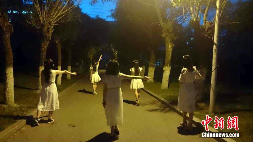 To memorize their school life, girls in Northeast Dianli University take a group of graduation photos in wedding dresses. (Chinanews.com/Feng Lu)