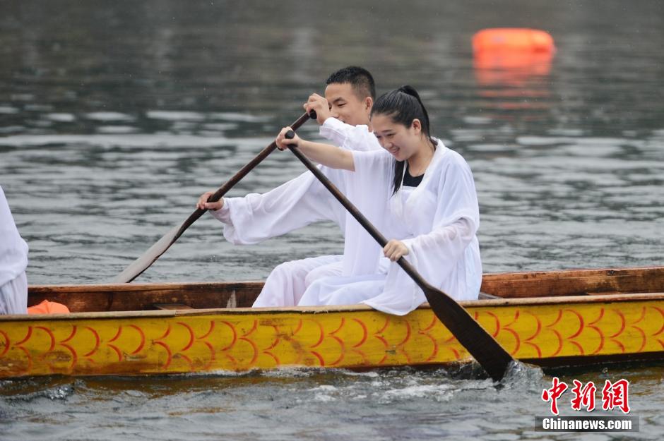 To celebrate the upcoming Dragon Boat Festival, a dragon boat race is held in Shiyanhu Park in Changsha, central China’s Hunan province on June 18, 2015. Two adorable monkeys acted as drummers in the boats, bringing much fun to the contest. (CNS/Yang Huafeng)
