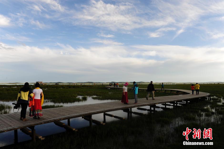 Tourists enjoy the beautiful scenery of Ruoergai wetland in Aba Tibetan and Qiang Autonomous Prefecture, southwest China's Sichuan Province. (CNS/An Yuan)