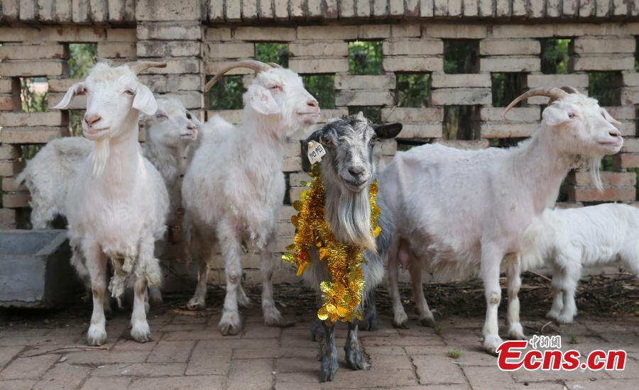 | Yangyang, a female goat cloned from an adult by Chinese scientists in 2000, celebrates her 15th birthday at the breeding base in Northwest University of Agriculture and Forestry Science and Technology, Xi'an, Northwest China's Shaanxi province, June 22, 2015. Goats usually have a life span of 16 to 18 years, and by this standard Yangyang can safely be called a long-lived goat. Yangyang looks listless and lacks appetite due to her age, her keeper said. Yangyang lives in a five-generation family. [China News Service] |