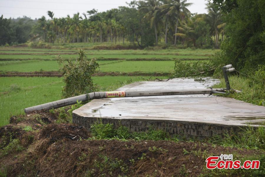 Strong winds brought by typhoon Kujira topple an electric pole in downtown Qionghai, South China’s Hainan province, June 23, 2015. (Photo: China News Service/Meng Zhongde)