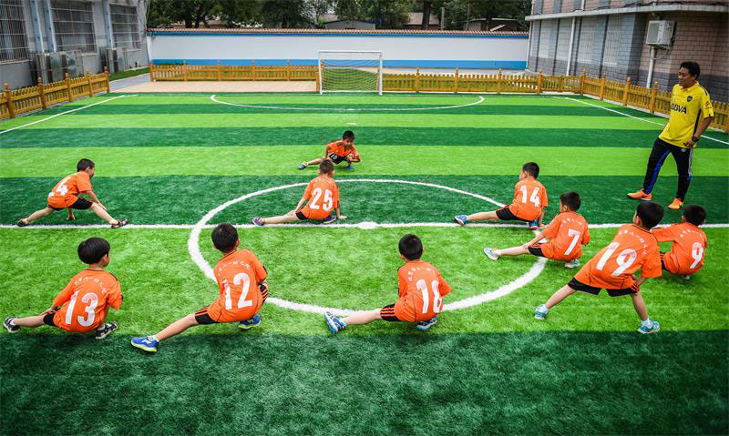 Beijing Liuyi Kindergarten established its first football team made up of young children and built an artificial pitch covering nearly 200 square meters. For each football class, these children undergo serious training on the pitch.(Photo/Xinhua)