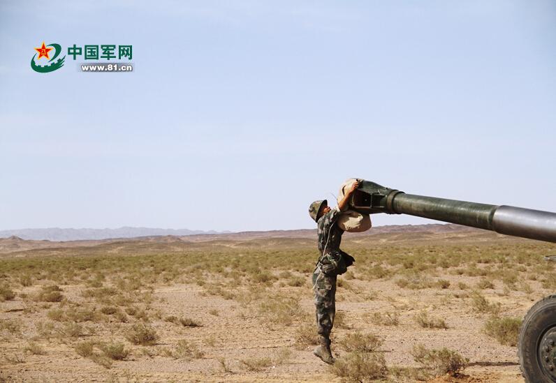PLA soldiers of an artillery regiment from Lanzhou Military Region recently conduct a live shell drill in Gobi desert. The drill helps to build up the courage and fighting capability of the soldiers in harsh environment. (Photo/81.cn)